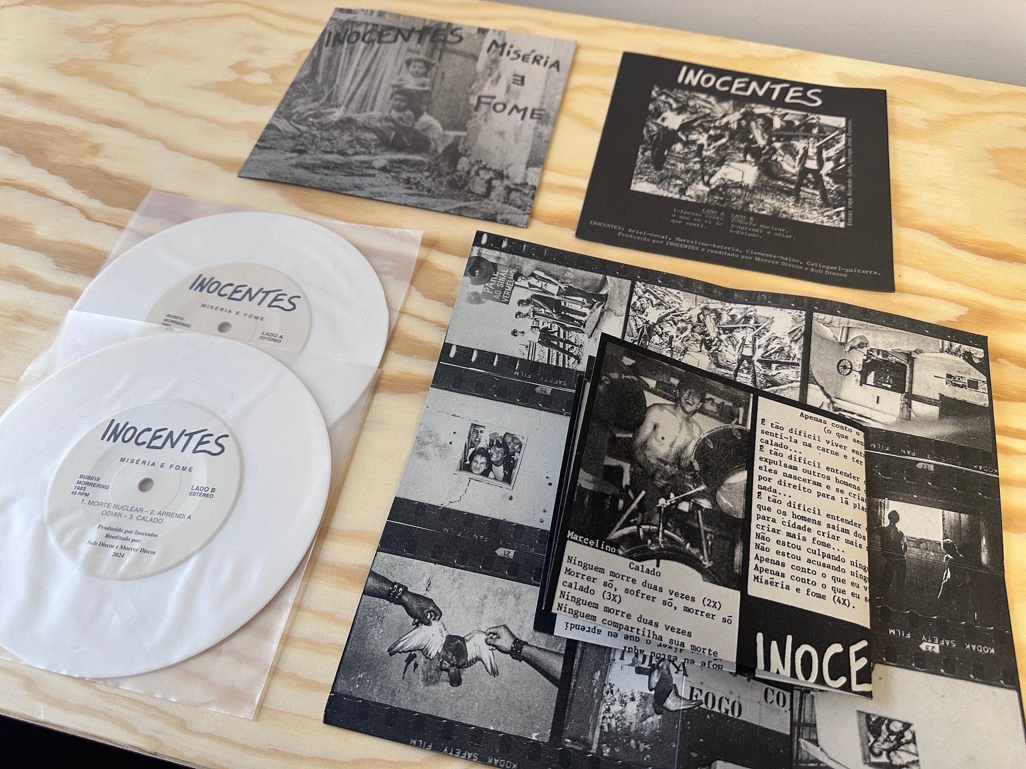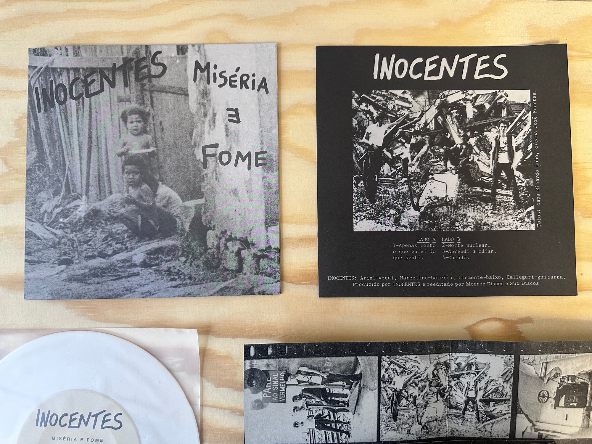 Independently released in 1983, the "Miséria e Fome" EP is one of the most iconic records in Brazilian punk history. Formed in 1981 by former members of Restos de Nada and Condutores de Cadáver, Inocentes channeled the energy and indignation of a youth suffocated by the Brazilian military dictatorship. Originally conceived as an 11-track album, the work had to be reduced to just four songs after seven tracks were censored by the government due to their strong political protest lyrics. Brazil was still experiencing the final years of military rule, and Miséria e Fome became a direct reflection of that reality, delivering a raw, fast, and explosive sound, in line with the international hardcore scene of the day.